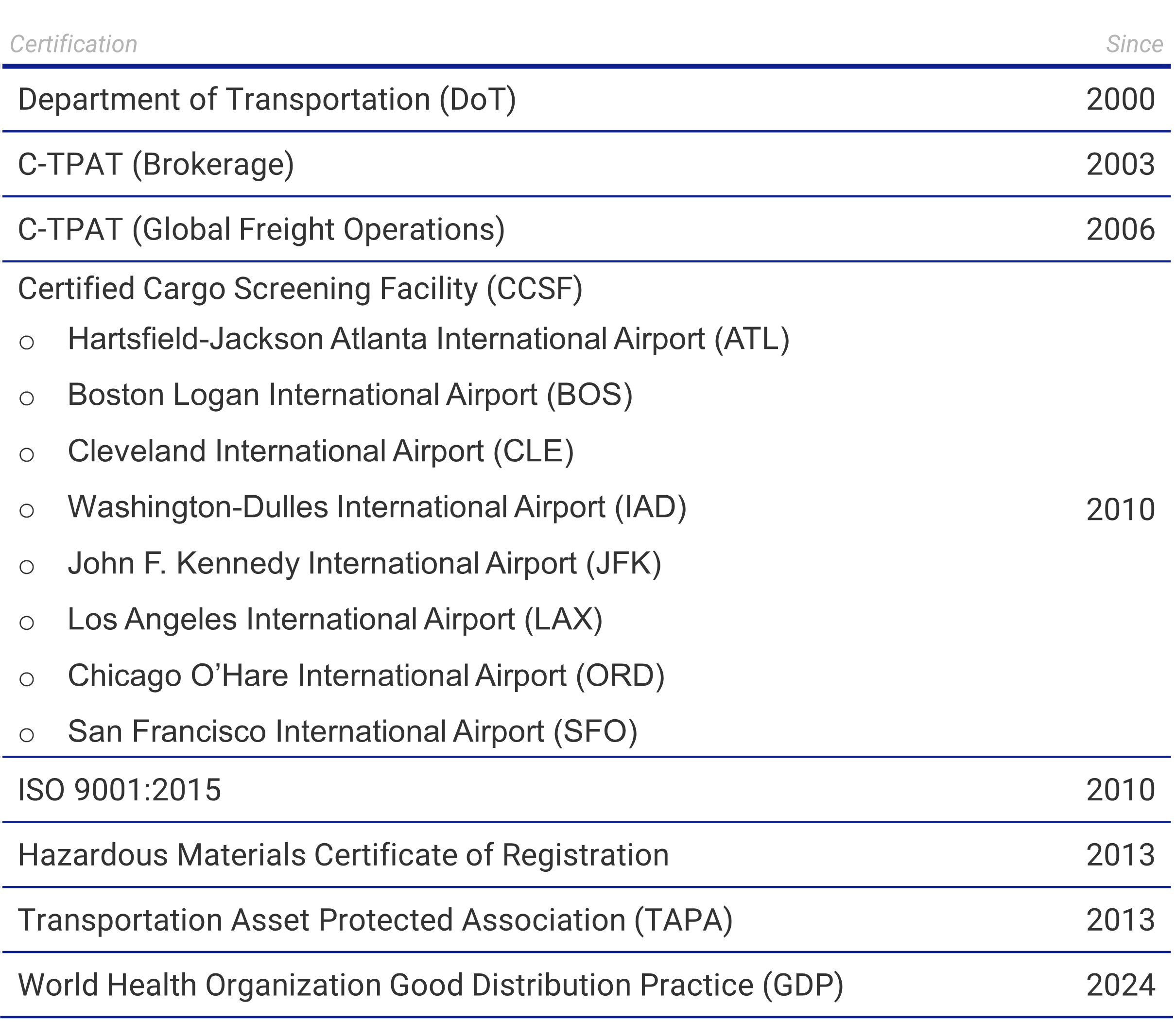 Certifications